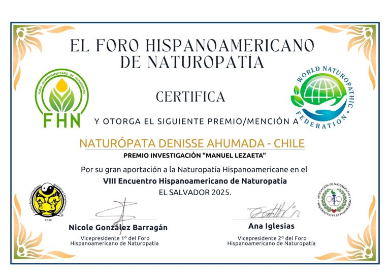 Por su parte, Denisse Ahumada, naturópata, socia activa y secretaria de Naturópatas para Chile, fue reconocida con el Premio de Investigación “Manuel Lezaeta”, que distingue a quienes han contribuido a la investigación científica en Naturopatía mediante enfoques metodológicos rigurosos.